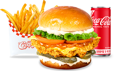 실한 국내산 닭으로 완성한 슈퍼크리스피만의 진짜 미국식 치킨 & 버거